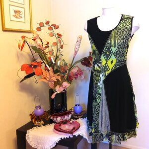 NWOT Laura Well Tailored Black Green Summer Lined Midi Dress Size 8