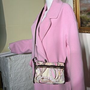 Never used, cute LeSPORTSAC Everyday crossbody bag in lovely brown, pink, tan and white tones featuring a classic Paisley print with hearts. Brown canvas adjustable strap, two exterior zippered pockets, main zippered compartment. Interior is in perfect condition, this cute bag is light and packable so perfect to take on trips.