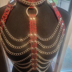 Kookie brand leather and chain decorative rave party festival cosplay bra.