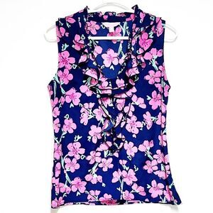 NWOT Lilly Pulitzer Allison Navy Pink Floral Ruffled Tank Top Sz XS Host Pick