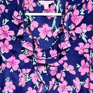 NWOT Lilly Pulitzer Allison Navy Pink Floral Ruffled Tank Top Sz XS