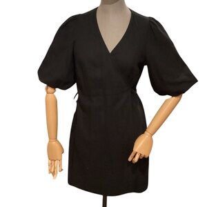 NWOT. Linen Blend, with cotton, black, puff sleeve wrap dress, size S, Old Navy