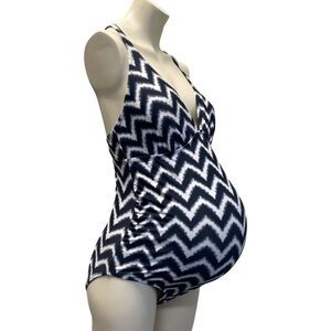 NWOT Liz Lange Maternity Grey White Chevron Print One Piece Swimsuit