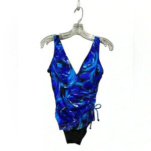 NWOT, Longitude, Ruffle Surplice Long Torso One Piece Swimsuit, 8, Blue