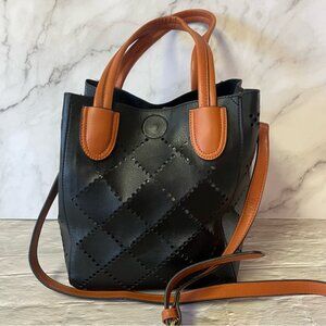 NWOT Louenhide Baby Bermuda Two Tone Black & Whisky Tote Bag Vegan Leather