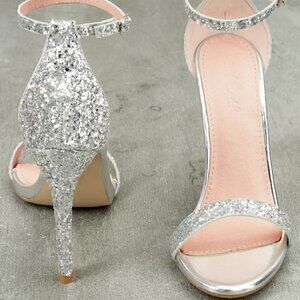 NWOT LovMark Silver Glitter Ankle Strap Heels - Size 6 1/2