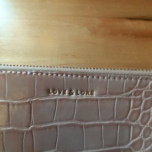 NWOT Love & Lore Pink Blush Faux Alligator Skin Gold Hardware Zip top Wristlet
