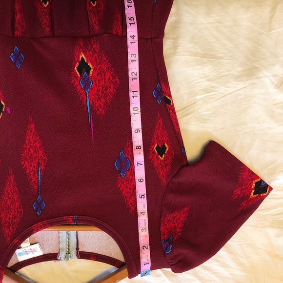 Never worn LuLaRoe Amelia dress. The stretchy knit fabric lets you wear the dress all day while having the structure and tailoring that make it sophisticated enough for the office or a fancy night out. The dress features handset box pleats, giving the dress a flowing, full skirt. It also has hidden pockets. The zipper is missing the pull tab.