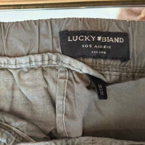 This is a NWOT Lucky Brand men's pair of slim joggers in army green - size M. Bought for my son for Christmas, and he never wore them. Tags are off, but they are so cozy, with a brushed cotton feel. Excellent condition, never worn.