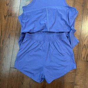 A one-piece that looks like two. Attached at the front, but not attached at the back for easy putting on