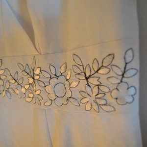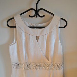 A beautiful dress! Elegant lined linen dress with embroidered flower embellishments, never worn.