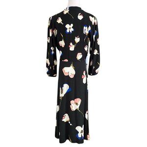 NWOT MASSIMO DUTTI BLACK FLORAL FRONT-KNOT MIDI DRESS - 4