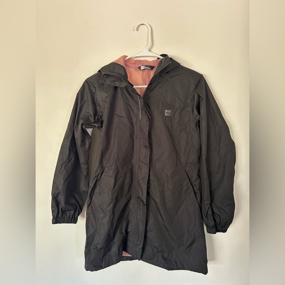 NWOT MEC Youth Black Rain Jacket with Pink Mesh Lining Size 12
