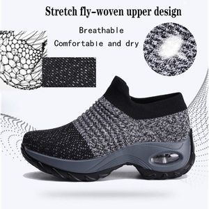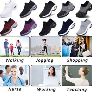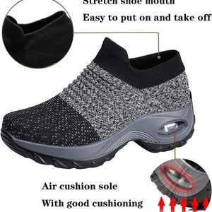 MATERIAL:Fashion walking shoes adopt breathable and lightweight knit upper, Slip on, breathable fly-knit upper, soft split sole, comfortable air cushion, keep your feet cool and comfortable. Absorb sweat and deodorant, super comfort shoes.