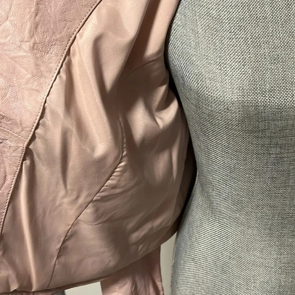 NWOT MICHAEL KORS This gorgeous lamb leather coat is stunning in person and the leather is soft as butter. It naturally has a crinkle effect to it that’s what I loved about it. I’m not into pink anymore and never had a chance to wear it so I know someone is going to love this jacket. The gold hardware is perfect with the soft pink color. 2 front pockets and zipper closure, snap button, zipper arm.
