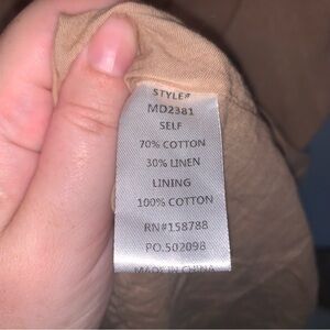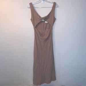 NWOT Mable Open Front Linen Cotton Midi Tan Dress M