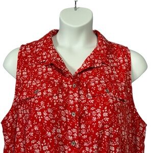 Bring summer vibes to your wardrobe with this plus size sleeveless red floral dress from Mario Serrani. Featuring a collared neckline, front button closure, and a drawstring waist, this light and breezy dress is ideal for sunny days, vacations, or casual outings.