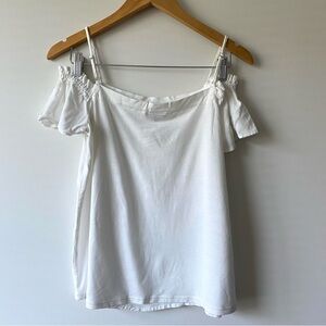 NWOT Massimo Dutti Flutter Sleeves Cold Shoulder Top White Size 8