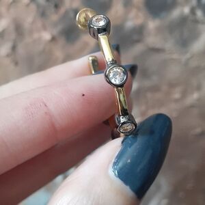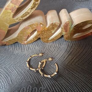 contemporary and timeless 2 toned Hokd plated hoop earrings from Massimo Dutti. brand new, will come with Massimo dutti dust bag. crystal detailing with stud closures. quite lightweight and mid sized. see below for measurements. perfect for everyday or night!