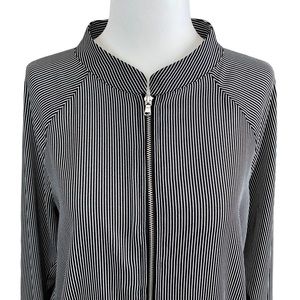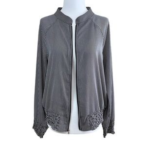 Black and white stripes, ruffled elastic cuffs and waist, silver hardware, super light and airy.
