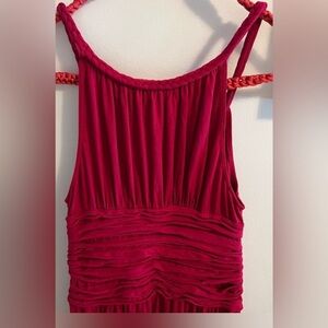 Stunning red maxi dress with pleats on the waist. Perfect for any occasion.