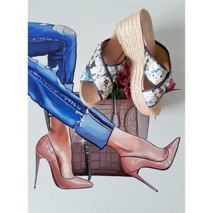 NWOT never worn Maypol sequin and textile criss-cross strap espadrille platform wedge sandals