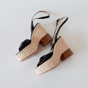 NWOT Michael Kors black leather raffia platform heeled sandal w/ ankle strap, 38