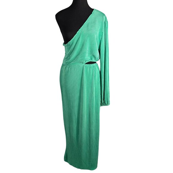 NWOT | Mint Green Pleated One Shoulder Long Sleeve Cut Out Maxi Dress | XLarge