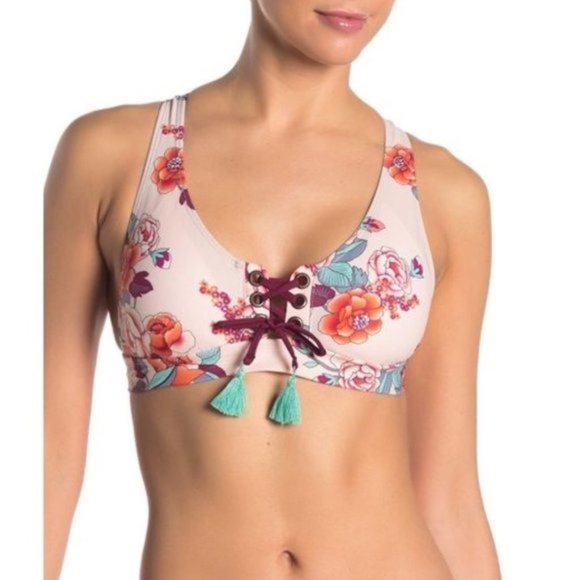 NWOT Mossimo Women's Printed Lace-up Bikini Top