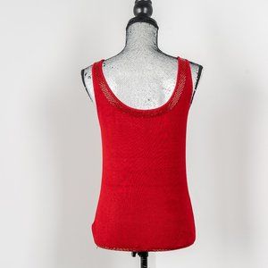 NWOT red knit cami with red bugle beading trim front and back size medium