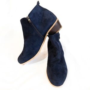 NWOT Mystery blue faux suede flat bootie. size 42 US 10