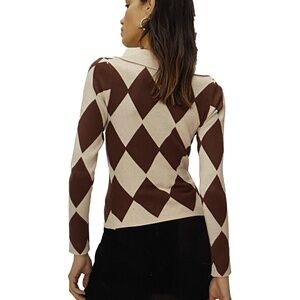 NWOT NASTY GAL Clueless Harlequin Print Fitted Polo Argyle Preppy Knit Sweater M