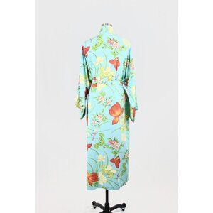 NWOT NATORI Turquoise Blue Floral Matte Satin Kimono Robe, Size M