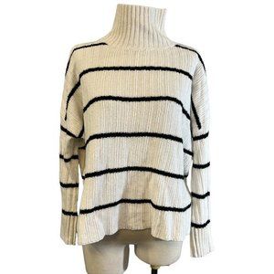 NWOT NORDSTROM Organic Cotton & Merino Wool Turtleneck Sweater in Ivory- Black Stripe (XS)