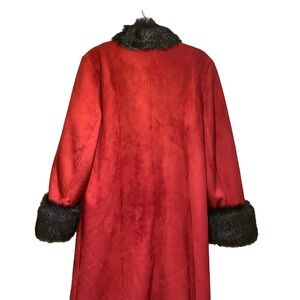 NWOT NOVELTI Penny Lane Afghan Faux Fur Suede Trim Red Black Hippie Coat L