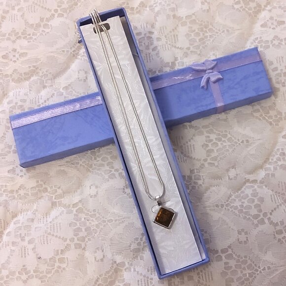 NWOT NY Square Pendant Double Chain Silver Necklace for Women Girls