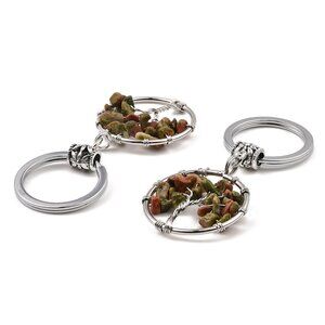 NWOT Natural Unakite Handmade Wire wrap tree of Life KeyChain Holder or Pendant