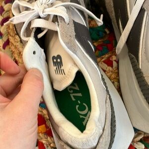 Stylish gray and white sneakers with lace-up design. Perfect for casual wear.