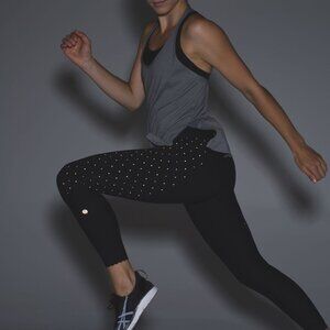 NWOT! New Lululemon Tight Stuff Tight / pant / leggings Black, gold logo reflect