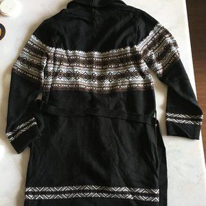 NWOT! New! Mark neutral knit long open cardigan, black, brown, fair isle, belt