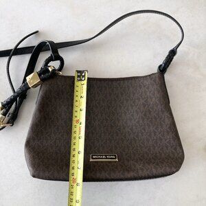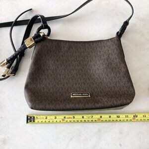 Authentic Michael Kors Lexington large logo crossbody bag / purse (black leather strap, gold hardware, black & brown MK logo print)