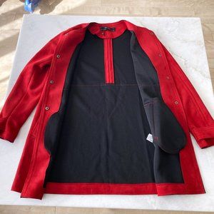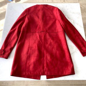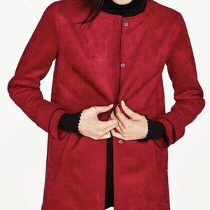 NWOT! New Zara long red faux suede jacket / coat, round neck (size M)