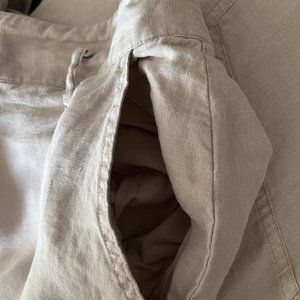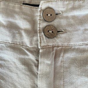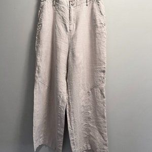 NWOT, these wide legged linen pants were never worn. These are high waisted, zipper closed pants that has 2 buttons at the waist for closure. These are wide legged pants that would easily be cool in the summer.