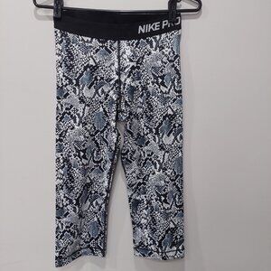 Nike Pro Leggings Women's Black White Snakeskin Capri/ Legging Gym Workout, M