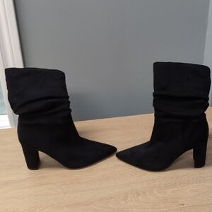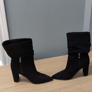 NWOT Nine West Unni Black Heeled Suede Boots with Pointed Toe. Size 6.5M