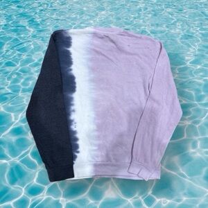 This is a new, without tags Nirvana Smiley Face tie-dye sweatshirt in size large genderless. The left side is more of a lavender colour and the right is a dark purple/blue.