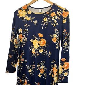 NWOT OLD NAVY Navy Floral Print long Sleeve Stretch Casual Dress XS