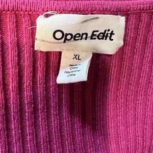 NWOT OPEN EDIT Rib Scoop Neck Sweater in Pink Malaga (XL)