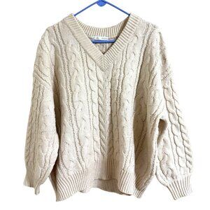 NWOT Oak + Fort Cable Knit V-Neck Sweater