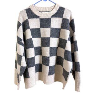 NWOT Oak + Fort Checkered Crew Neck Sweater